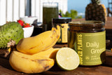 - Daily Greens: Wheatgrass*, Barley Grass*, Moringa*, Baobab*, Spirulina* and Chlorella* Powder.